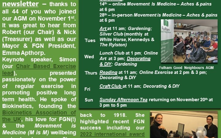 - The FGN weekly activities - Summary of the AGN meeting - Introducing new staff members - Movement is Medicine talks - Upcoming events